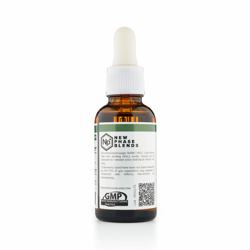 New Phase Blends recommends starting with a low dose, such as 1/4 – 1/2 mL once or twice a day. If needed, you can gradually increase the dosage over a few weeks until you achieve the desired results. The included marked dropper makes it easy to measure precisely.