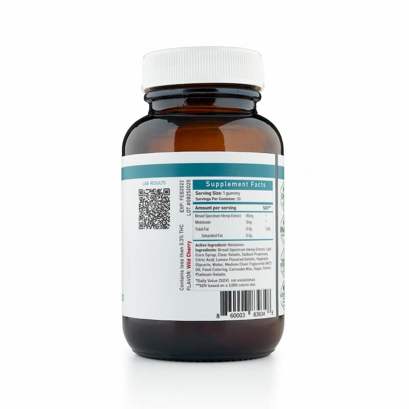 - 45 mg of premium, broad spectrum CBD extract per gummy (helps induce a healthy sleep)